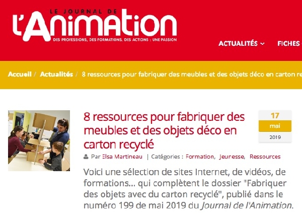En complément de dossier "Fabriquer des objets avec du carton recyclé", publié dans le numéro 199 de mai 2019, le Journal ...