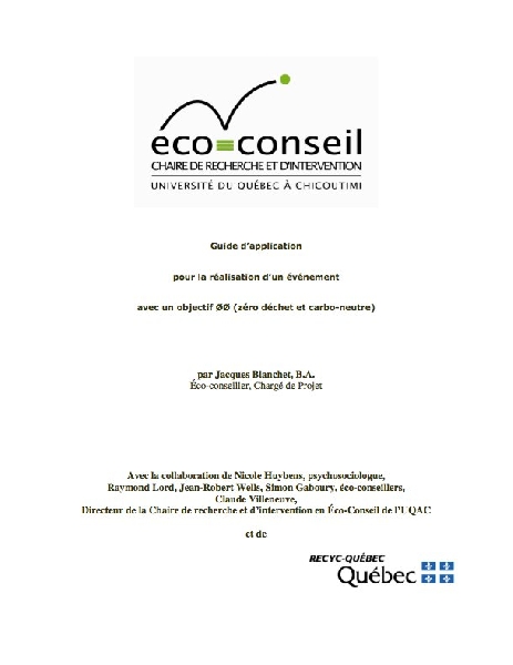 Ce guide, dans sa première partie, aide à comprendre pour quelles raisons un événement avec un objectif ØØ (zéro déchet et ...