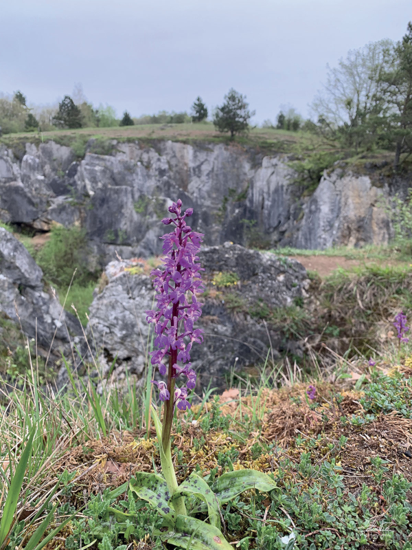 Une orchidée (Orchis mâle) dans une ancienne carrière.